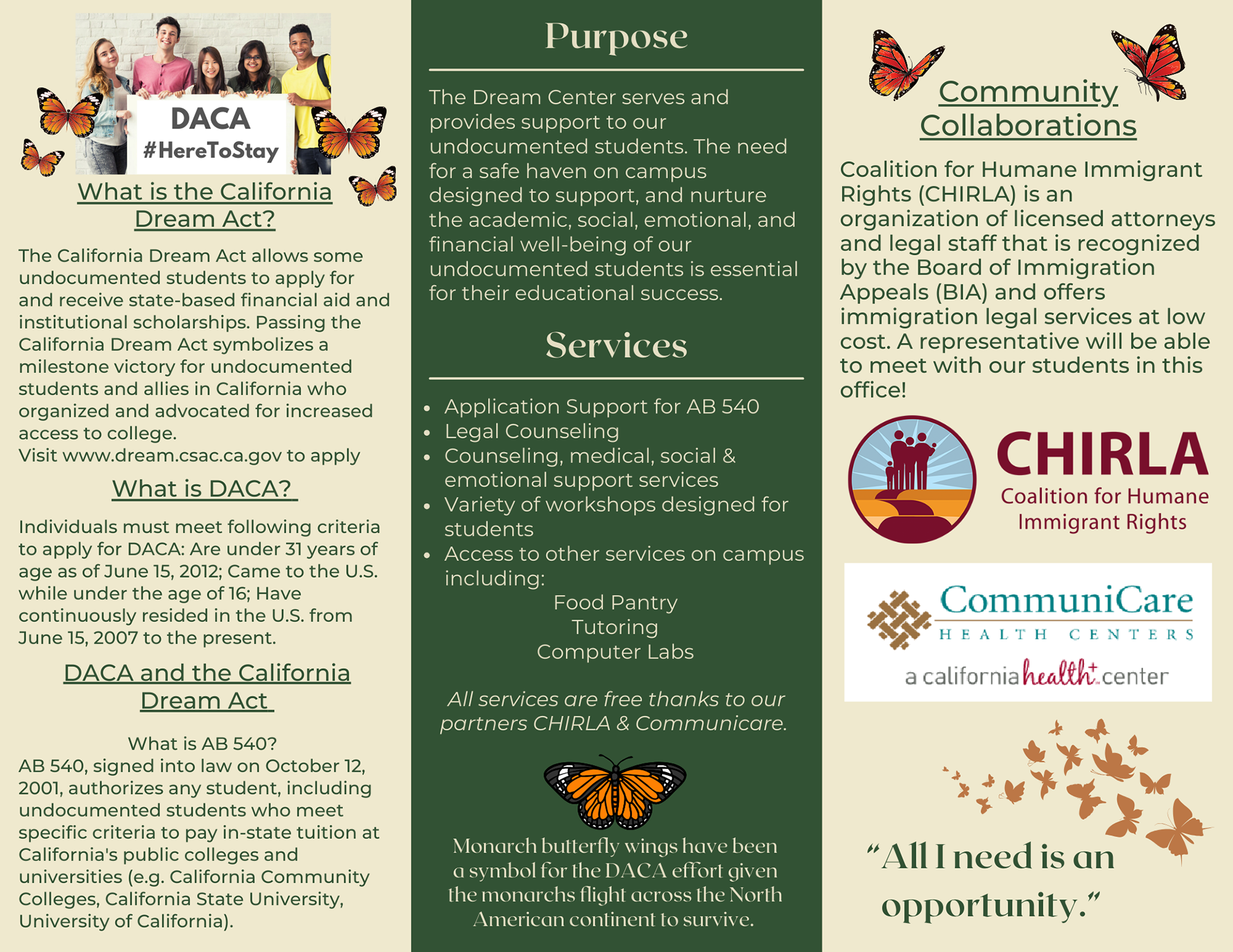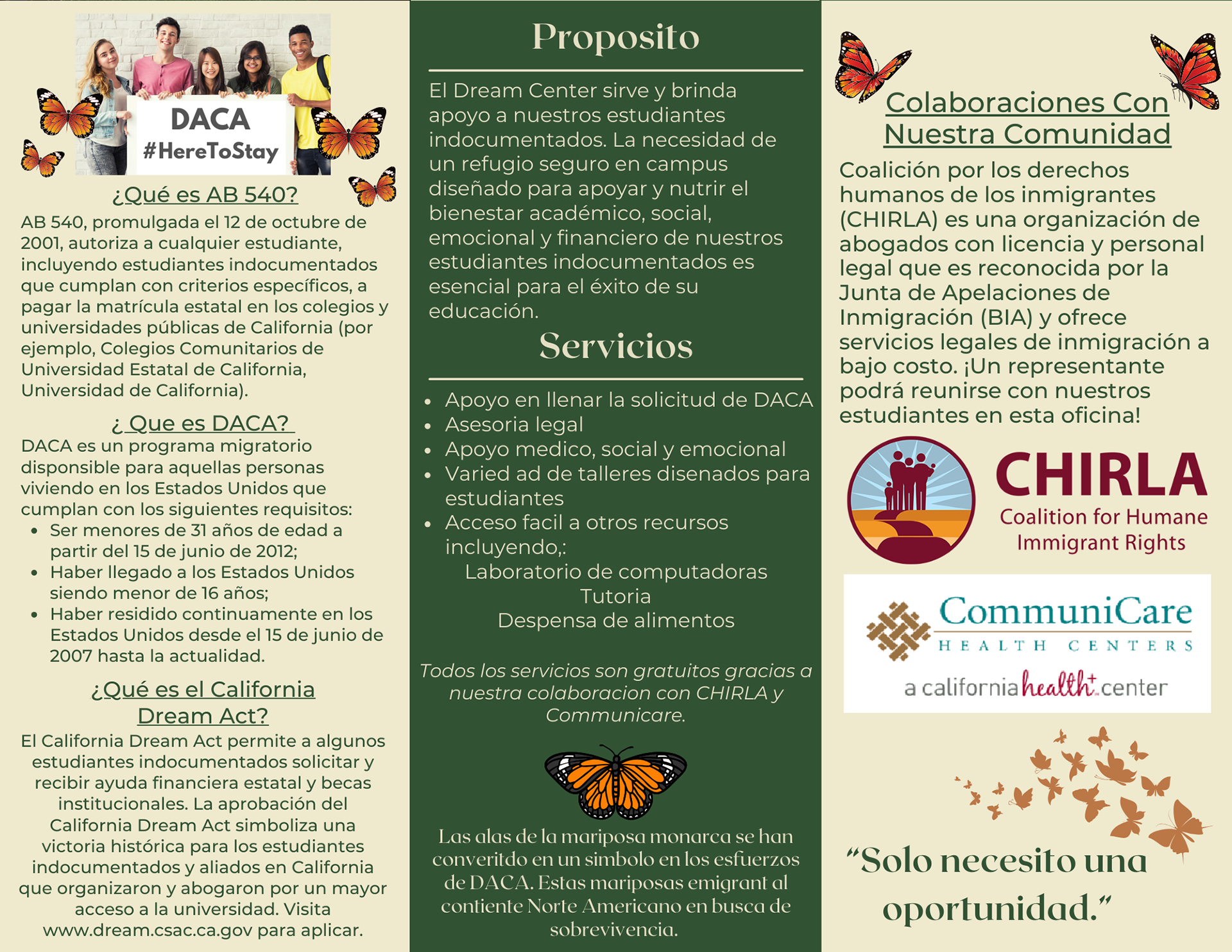 Spanish Version of Dream Center Brochure